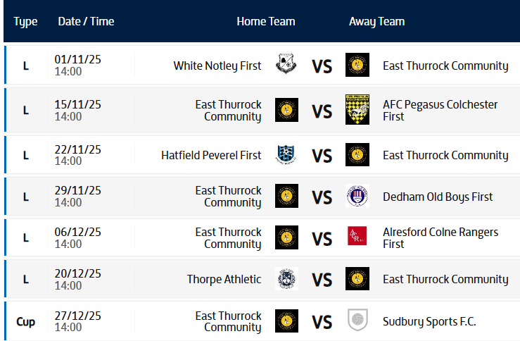 For the latest league table and the upcoming fixtures of the Essex & Suffolk Border League, click the button below which will take you to the FA Full Time website with all the information.