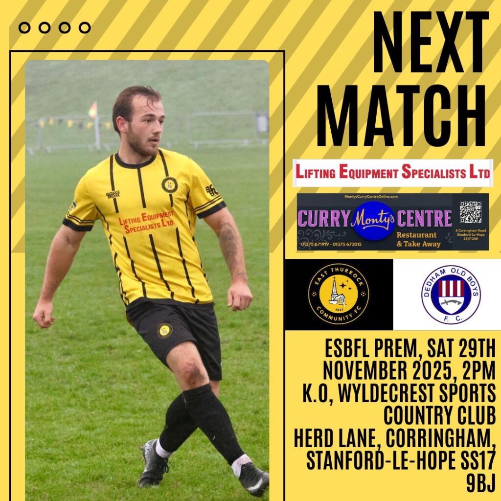 Match Report – East Thurrock CFC v Dedham Old Boys (29/11/2025)