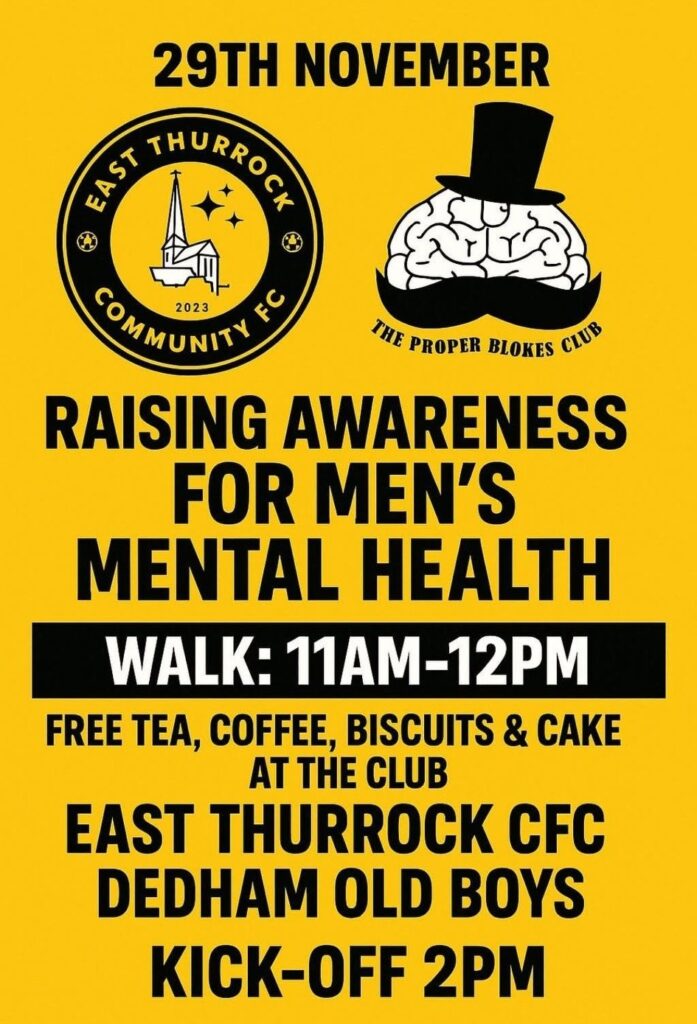 Men’s Mental Health Walk – starts and ends at the club before the match.