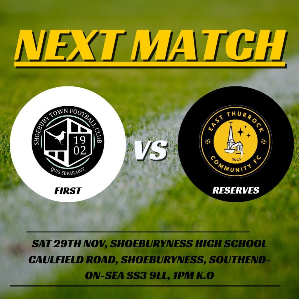 Reserves are away to Shoebury Town , this game is a 1pm Kick Off.